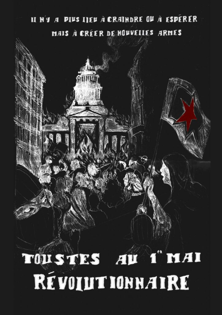 Ce 1er Mai, ensemble, affirmons notre rejet radical de ce système mortifère et notre volonté d’une société nouvelle. Une manifestation de rue n’est qu’une petite étape, mais elle sera notre rendez-vous, parce qu’il ne s’agira pas, pour une fois, de « revendiquer » ou de « protester » : il s’agira de matérialiser notre volonté de combattre, ensemble, nos ennemis communs.